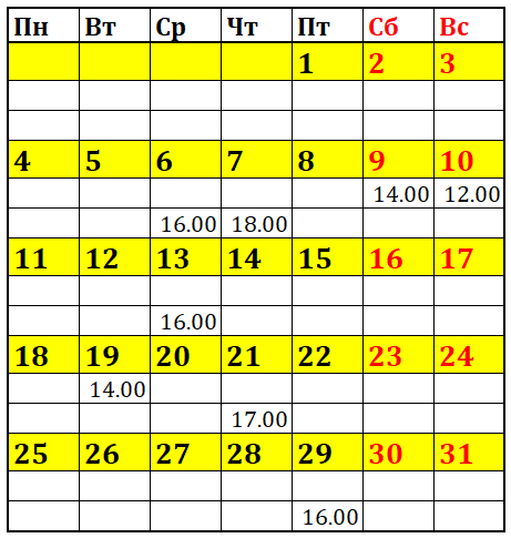 Понедельник — выходной.