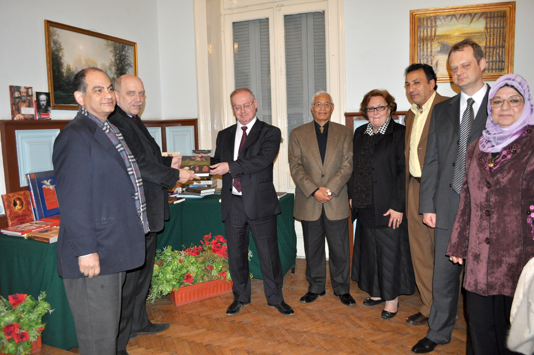 Торжественная церемония передачи книг состоялась 1 марта 2012 г. в Российском культурном центре. Собравшихся приветствовал директор РЦНК Александр Баленко. С рассказом о деятельности Дома русского зарубежья выступил заместитель директора Дома Владимир Угаров. В церемонии передачи книг принял участие Советник Посольства РФ в Египте Артем Поляков, Советник по международному культурному сотрудничеству Министерства культуры Египта д-р Анвар Ибрагим (известный в Египте переводчик произведений русских писателей, в том числе Александра Солженицына), руководитель Ассоциации выпускников российских вузов, преподаватели русского языка Университета «Айн-Шамс» и курсов русского языка при РЦНК, представители египетских СМИ, а также учащиеся школы при Посольстве РФ, которые представили литературно-музыкальную композицию по произведениям Ивана Бунина и Михаила Булгакова.