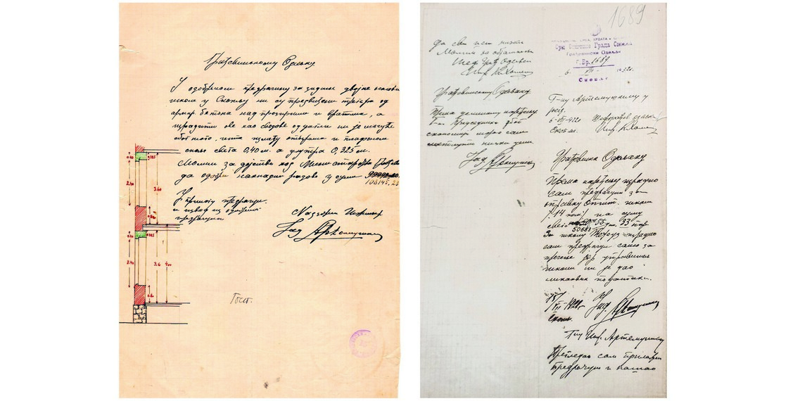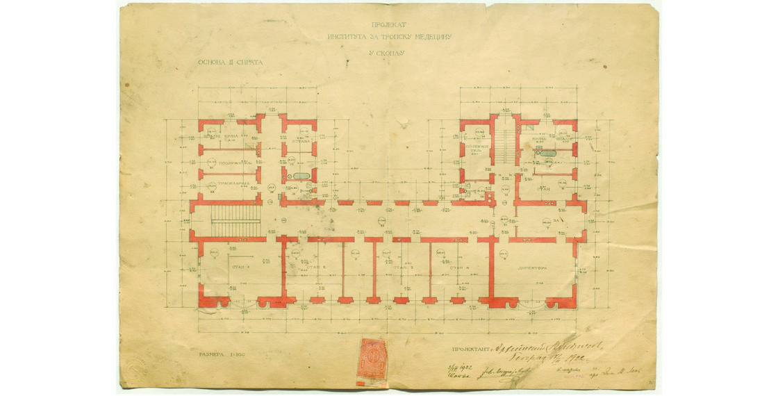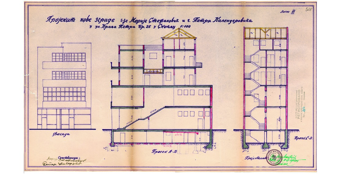 Министерство строительства Королевства СХС / Югославии в тех случаях, когда инвестором выступало государство, как правило, для проектирования и строительства общественных зданий в Скопье привлекало специалистов из Белграда: