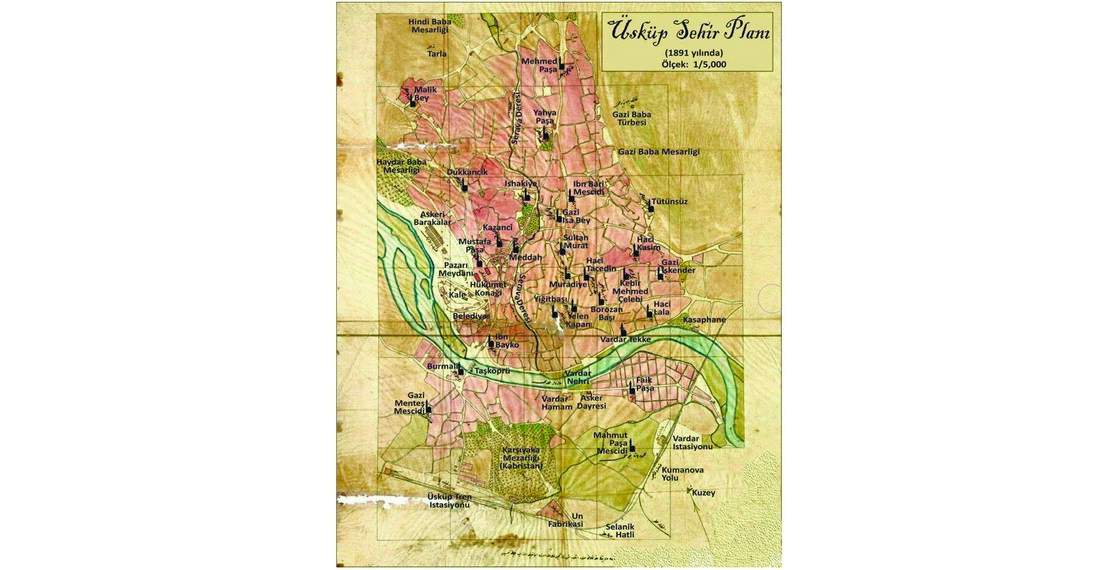 Находившийся до 1912 года в составе Османской империи город имел «ориентальный» характер. Толчком к переменам стало открытие в 1873 году железной дороги Скопье — Салоники. В 1876 году был создан первый генеральный план города. И все же город менялся довольно медленно. Историк византийского искусства и археолог Н.П.Кондаков, посетивший город в 1909 году, описал его так: «…Город с его вековыми кучами мусора, страшной пылью, сбившейся на улицах в четверть аршина вглубь, с его единственной замощенной улицей, рядом пустырей в самом центре, пересохшим Вардаром, зловонной падалью, здесь никогда неубираемой, и убогим восточным типом построек, напоминающим базарные кварталы Стамбула, производил угнетающее впечатление».