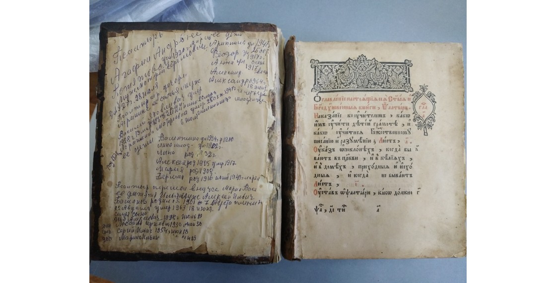 Синодик из храма Святого Архистратига Михаила во французском городе Риве (регион Рона — Альпы, департамент Изер), где с 1924 до начала 1970-х годов проживала большая русская колония, поступил от Андрея Андреевича Мусина-Пушкина (Франция).