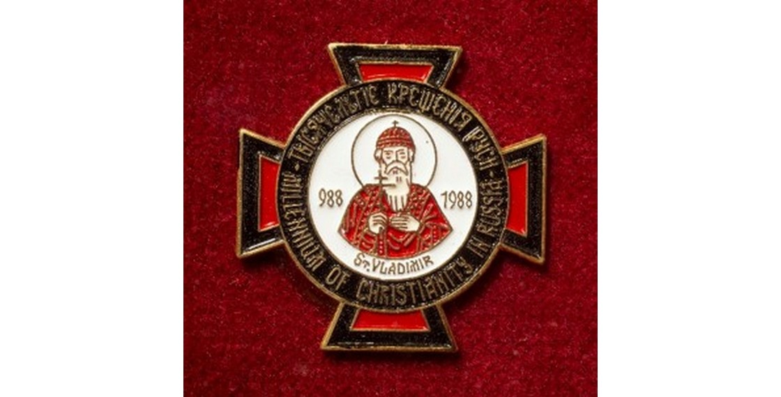 Коллекция памятных и юбилейных медалей и значков, посвященных 1000-летию Крещения Руси. Австралия, США, Германия, Франция, СССР. 1988. Металл, золочение, серебрение, цветная эмаль