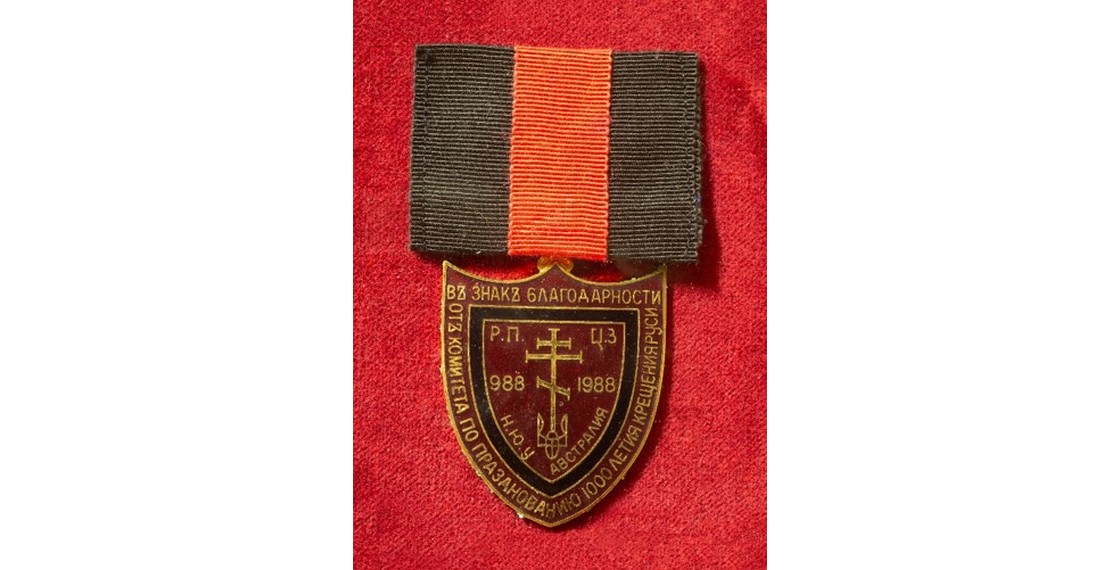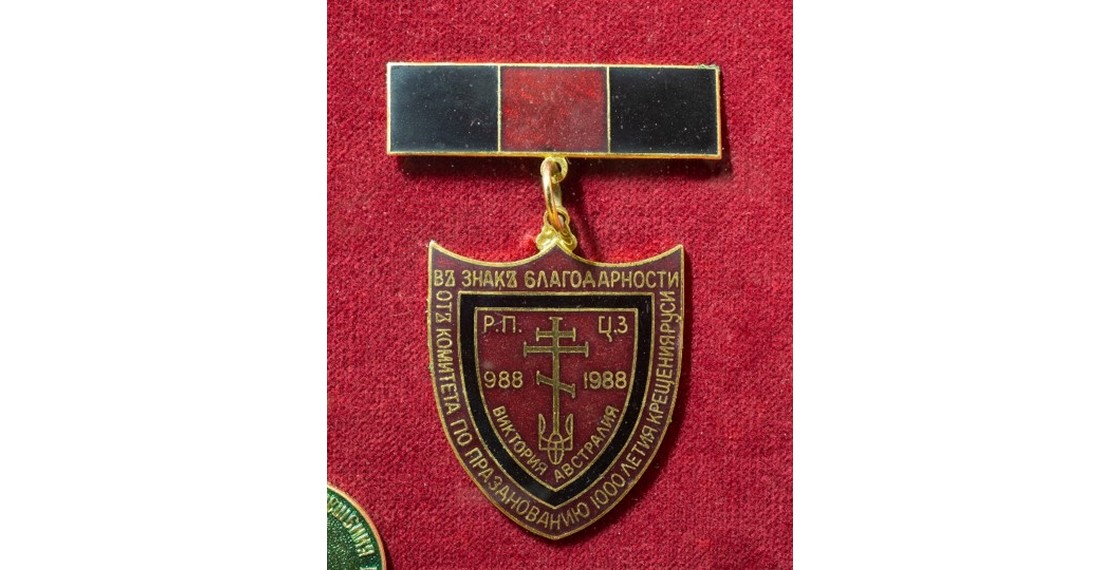 Коллекция медалей и значков, поступившая от Русского исторического общества в Австралии, была собрана архиепископом Павлом (Павловым) Сиднейским и Австралийско-Новозеландским к празднованию 1000-летия Крещения Руси в Сиднее в 1988 году.