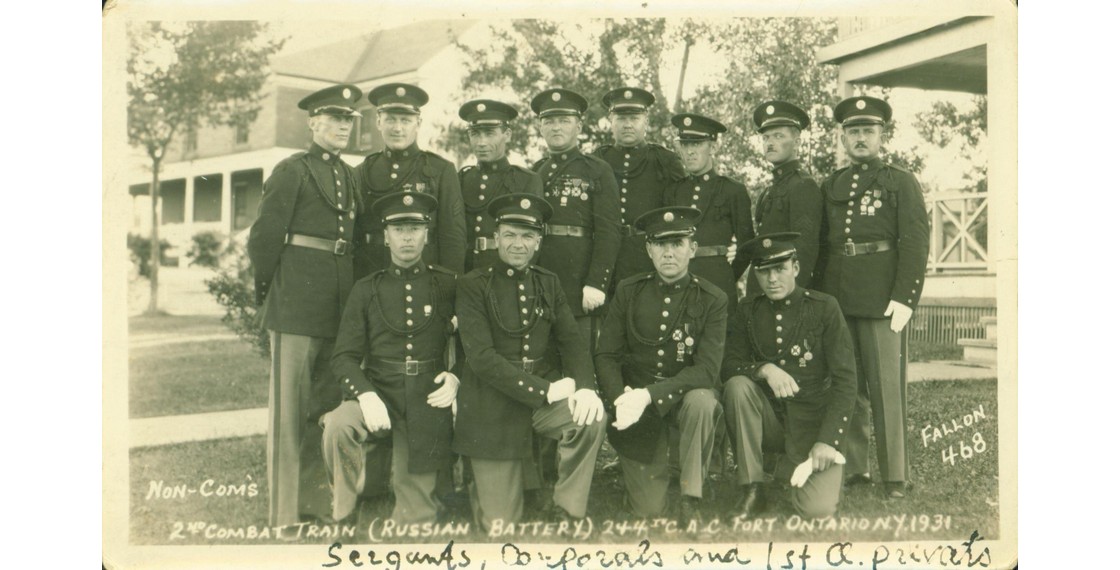 Русская батарея 244-го артиллерийского полка береговой охраны Национальной гвардии США. Первый справа во 2-м ряду — П.А.Дьяконов. Форт Онтарио (США). 1931. 7,9×13.