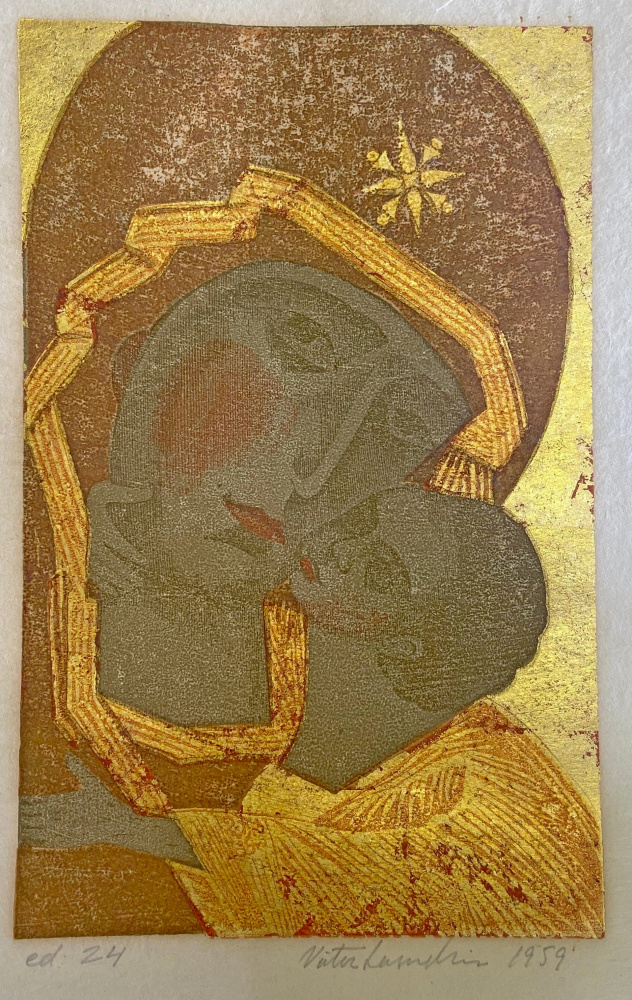 Виктор Сергеевич Лазухин. Божия Матерь Владимирская. США. 1959. Бумага, карандаш, литография цветная, золочение. В паспарту: 66 × 51; в свету: 38,5 × 25