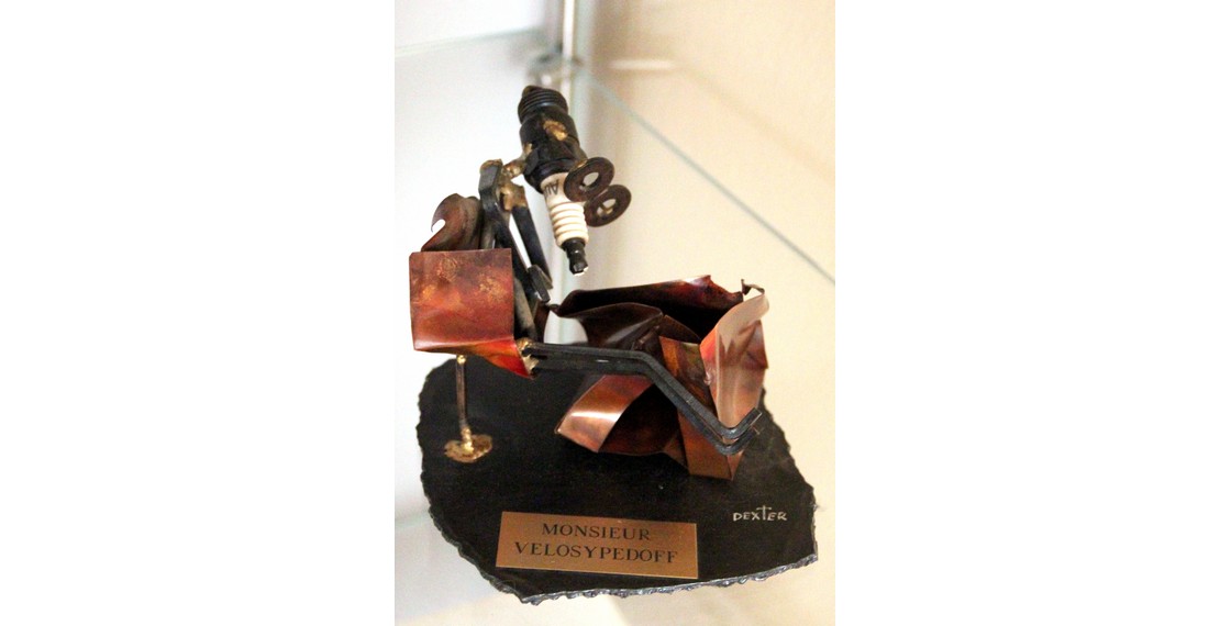 Декстер Бенедикт. MONSIEUR VELOSYPEDOFF. Инсталляция. США. 1980-е. Господин Велосипедов — главный герой романа В.П.Аксенова «Бумажный пейзаж».