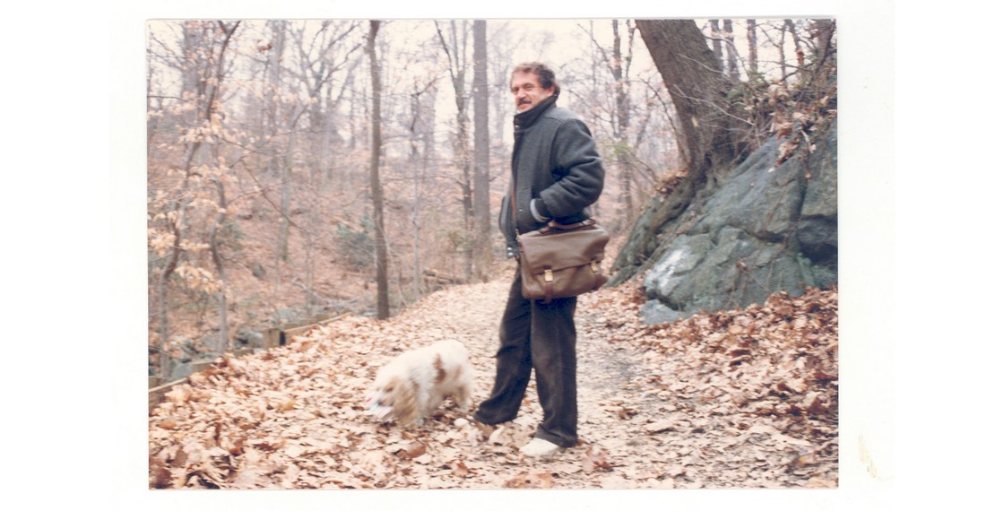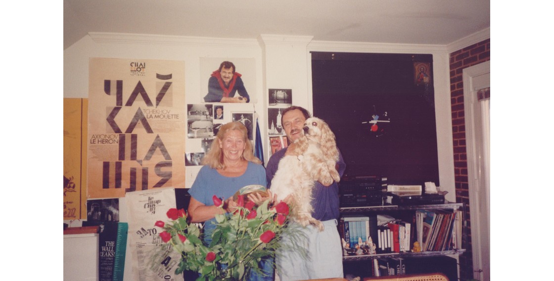 Алексей Аксенов, Иван Трунин, Василий Аксенов и пес Ушик. США. Начало 1990-х