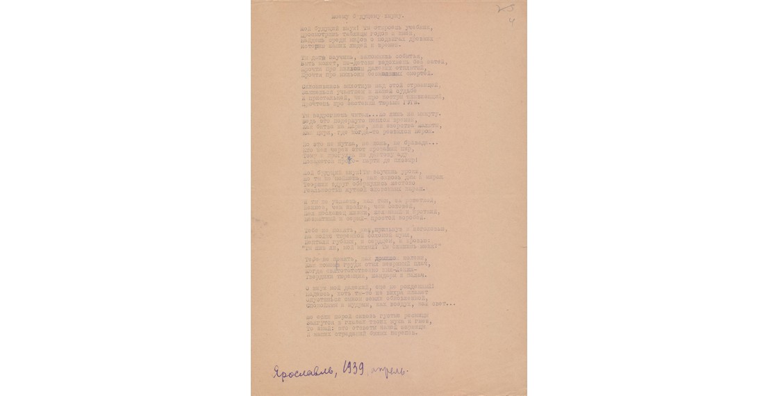 Стихотворение Е.С.Гинзбург «Моему будущему внуку» (Ярославская тюрьма. Апрель 1939). Машинопись