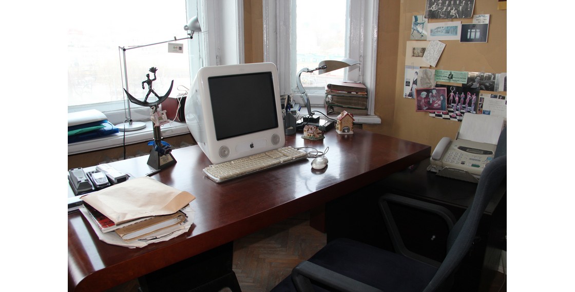 Рабочий стол, персональный компьютер eMac, кресло и тумба В.П.Аксенова из его кабинета. Москва. 1990–2000-е