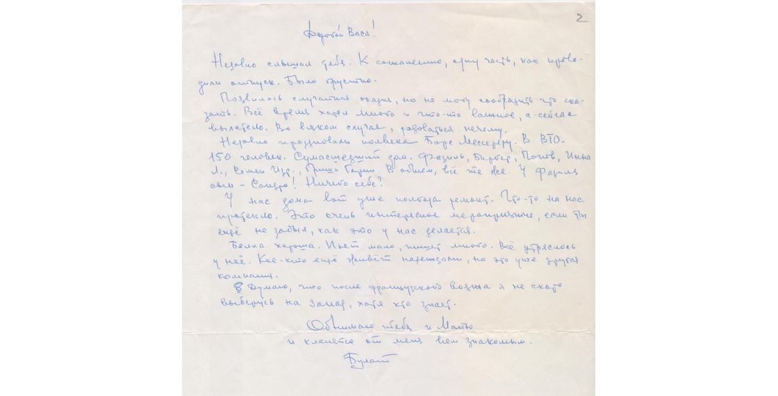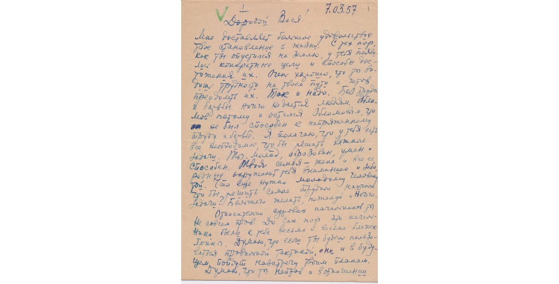 «Дорогой Вася! Мне доставляет большое удовольствие твое становление в жизни. С тех пор, как ты опустился на землю, у тебя появились конкретные цели и способы достижения их».