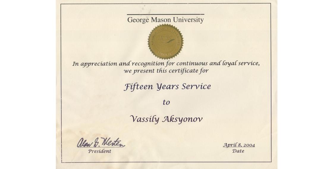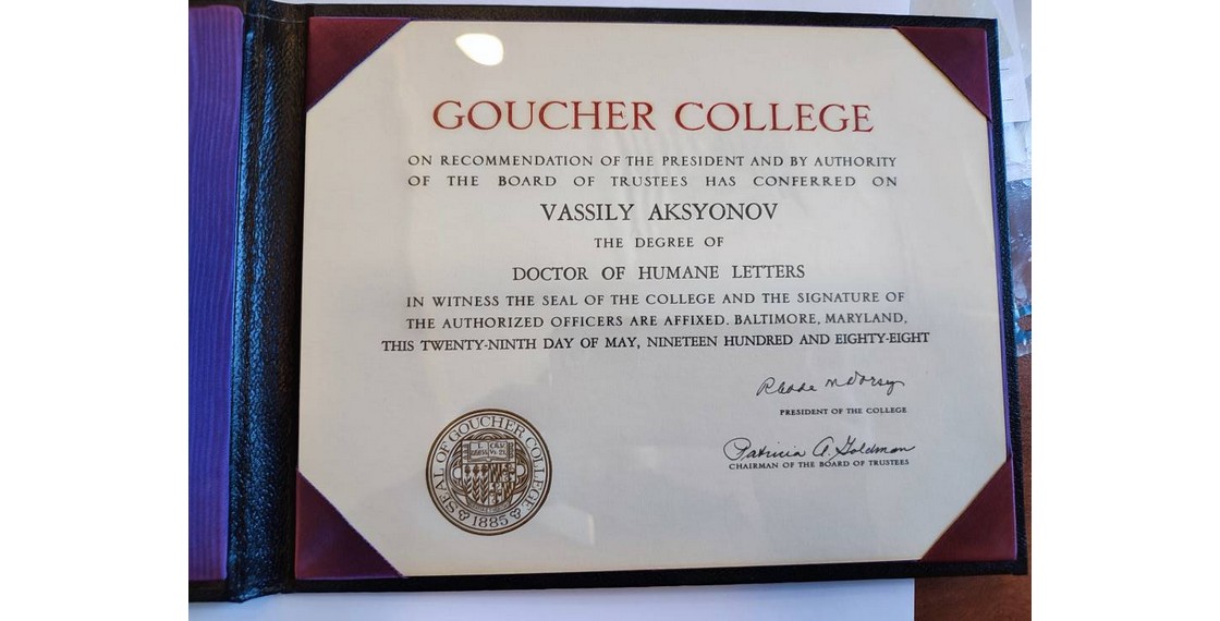 «…С того времени все эти годы я был неразрывно связан с Университетом, он стал моей естественной средой обитания, настоящей Америкой, приверженной своим традиционным ценностям: либерализму, гостеприимству, сдержанности и отпущению грехов. Я перемещался из одной школы в другую: Мичиганский университет, Университет Южной Калифорнии, Университет Вашингтона в дистрикте Колумбия, Гаучерский Колледж… Университет Джон Хопкинс… В конце концов, в 1988 году, я прибыл в Университет “Джордж Мэйсон”, этот самый университетский университет, Боже благослови его студентов и преподавательский состав» (Аксенов В. Американская кириллица).