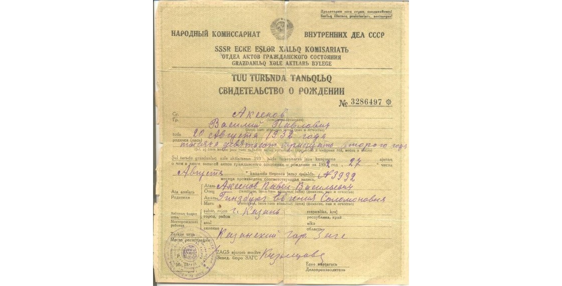 «Казань лежит на левом берегу Волги всего лишь в 800 км к востоку от Москвы, но для меня, быть может, не было более отдаленной точки в мире. Я ехал увидеть своего старого отца, но, кроме того, я ехал к самым истокам своей жизни, к сиротскому детству отпрыска “врагов народа”, к юдоли нашего быта. Все это было так же далеко для меня теперь, как Америка была далека для юношей пятидесятых: просто два конца путешествия» (Аксенов В. Десятилетие клеветы: Радиодневник писателя).