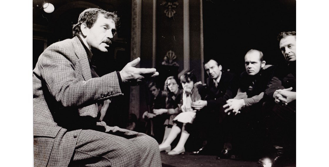 «Яцек, король своих уродов, сидел, скрестив крупные пальцы, и смотрел на кафельный пол, а уроды его, бородатые каменные мужики и грудастые бабы, маленькие и большие, прямо-таки горой вздымались за его спиной, прямо как полк, только бы дал он приказ — и они тронутся в поход, пугая приличных людей» (Аксенов В. Жаль, что вас не было с нами).