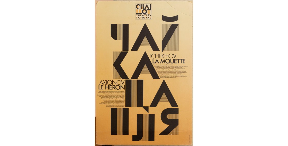 Афиша спектаклей по пьесам «Чайка» А.П.Чехова и «Цапля» В.П.Аксенова в Национальном театре Шайо. Париж (Франция). 1984