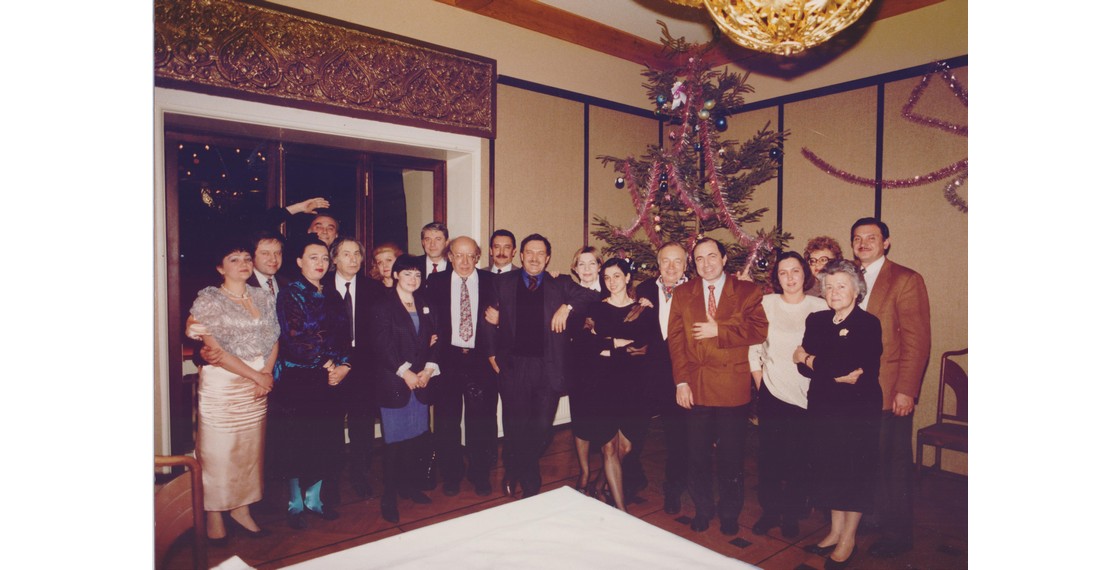 В.П.Аксенов с членами жюри, лауреатами и гостями церемонии вручения премии «Триумф». Фотография С.Берменьева. Москва. 1992
