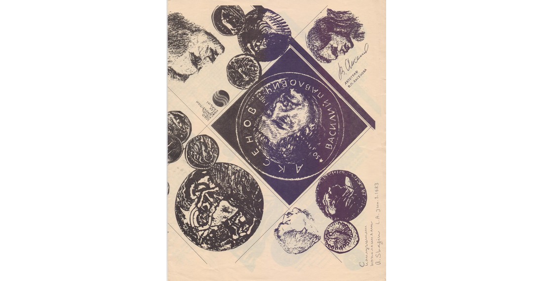 Приглашение на прослушивание специальной программы, посвященной 50-летию В.П.Аксенова, на радиостанции «R.T.V. Courier» с эскизами памятной медали работы А.Шагина. США. 20 августа 1982
