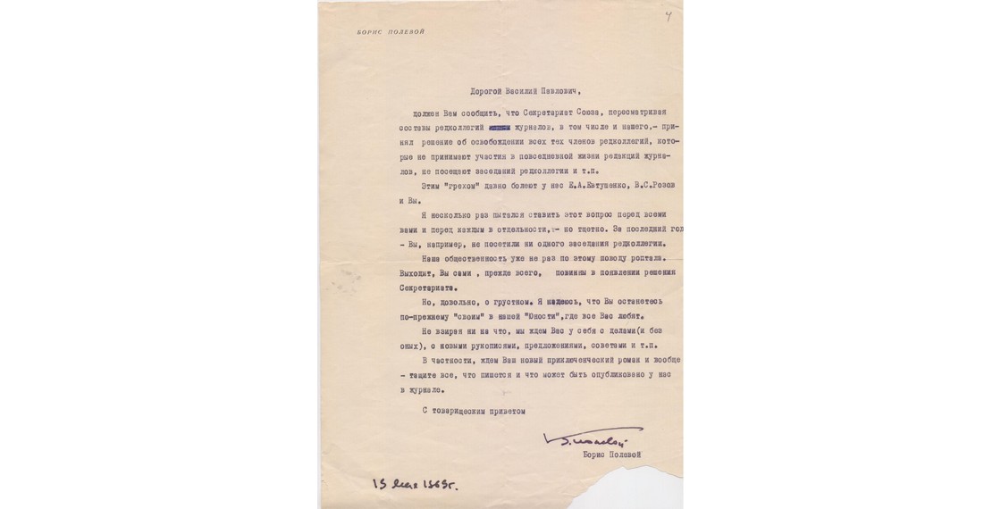 Письмо Б.Н.Полевого В.П.Аксенову. Москва. 13 мая 1963