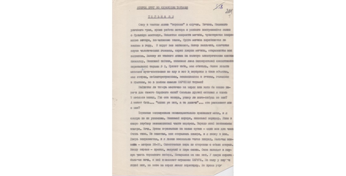 Страница машинописи воспоминаний П.В.Аксенова «Второй круг по казанским тюрьмам. Тюрьма № 2» (Казань. 1970–1977). О событиях конца 1939–1940 годов — после отмены смертного приговора