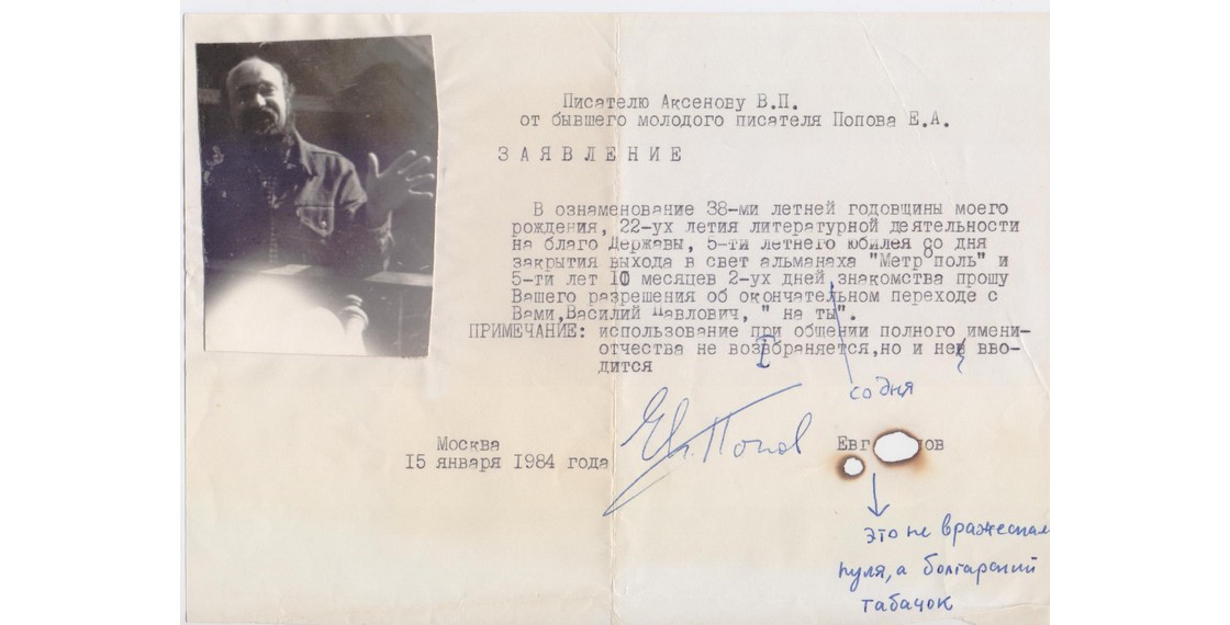 «Этот альманах бросает вызов всей нашей организации честных советских писателей. Он задуман как н е п о д ц е н з у р н о е издание. Намечена тайная передача за бугор; ты понимаешь? А самое паршивое состоит в том, что всю эту паутину плетет антисоветчик Ваксон» (Аксенов В. Таинственная страсть. Роман о шестидесятниках).