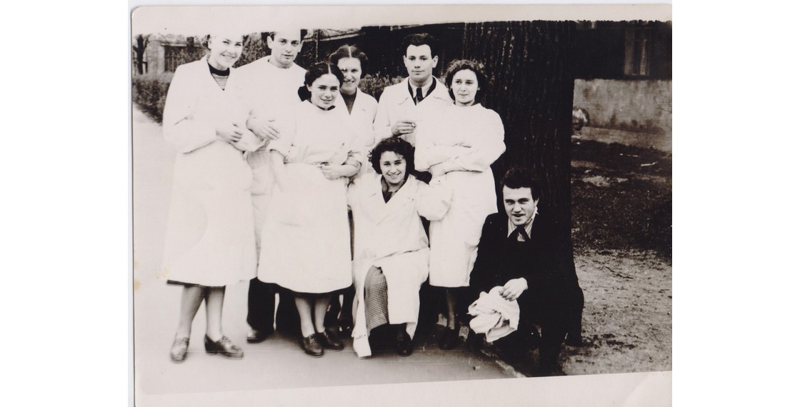 В.П.Аксенов и студенты 1-го Ленинградского медицинского института им. Павлова. Ленинград. 1955–1956