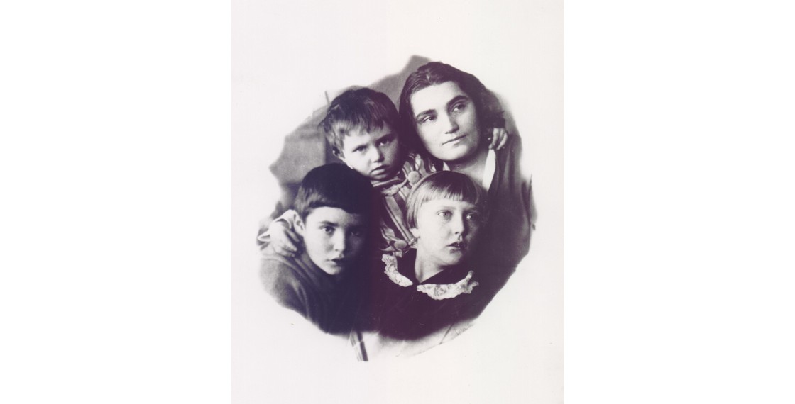 Е.С.Гинзбург, Алексей Федоров (ее старший сын), Василий и Майя (дочь П.В.Аксенова). Казань. 1934 или 1935
