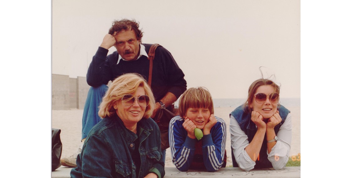 В.П.Аксенов, М.А.Овчинникова, ее внук Иван Трунин и дочь Е.М.Гринберг на пляже. США. 11 июня 1983