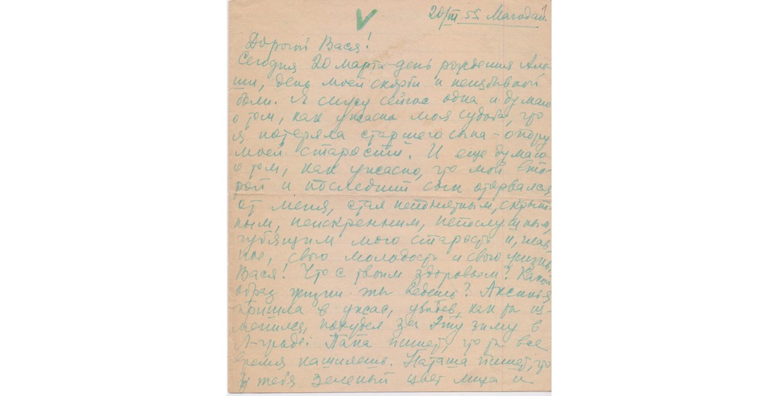 Письмо Е.С.Гинзбург сыну, В.П.Аксенову. Магадан. 20 марта 1955