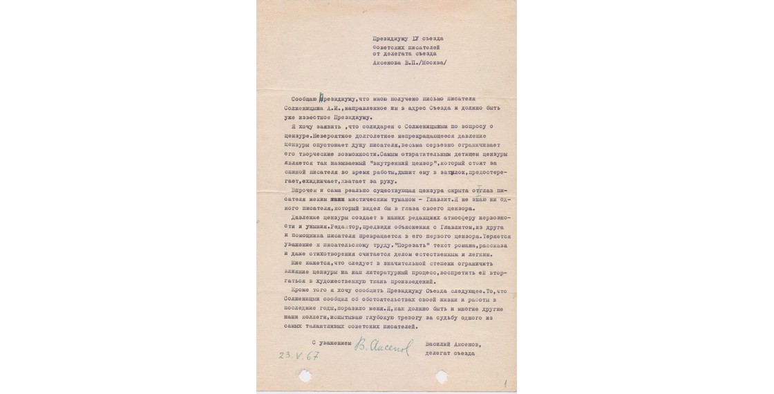 Далеко не все аксеновские материалы из фондов ДРЗ удалось разместить на юбилейной выставке. Виртуальная версия экспозиции дает возможность показать нашу коллекцию более подробно.