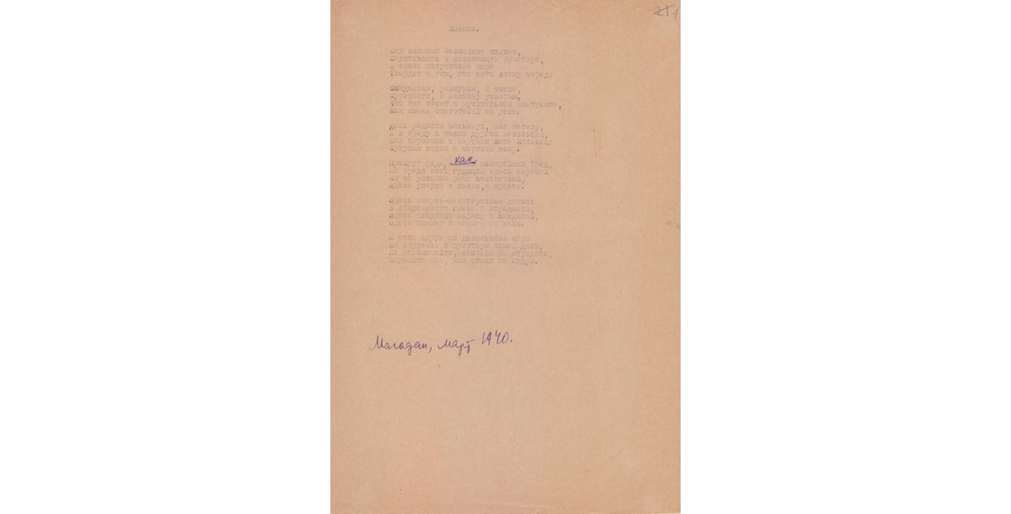 Стихотворение Е.С.Гинзбург «Колыма» (Магадан. Март 1940). Машинопись