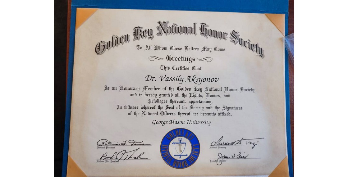 Профессорский нагрудный знак В.П.Аксенова, выданный Университетом Джорджа Мейсона. Виргиния (США). 1990-е