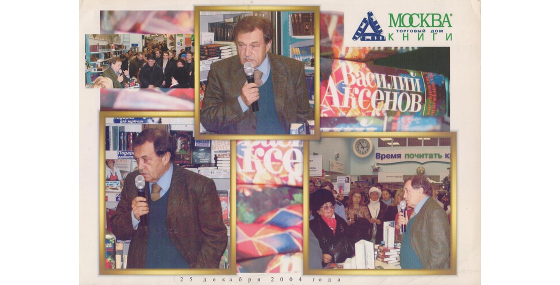 В.П.Аксенов на фоне своих книг. Коллаж. Москва. 25 декабря 2004