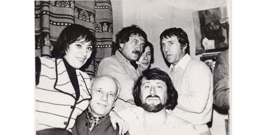 Слева направо: И.Л.Лиснянская, В.Н.Тростников, В.П.Аксенов, В.В.Ерофеев, Ю.М.Кублановский, В.С.Высоцкий. Москва. 1979