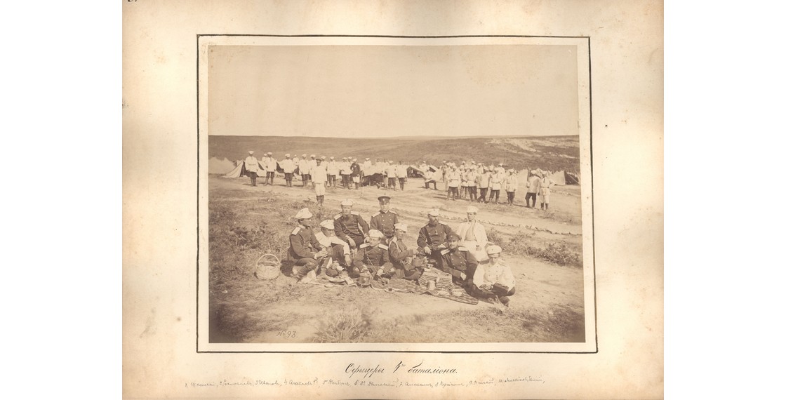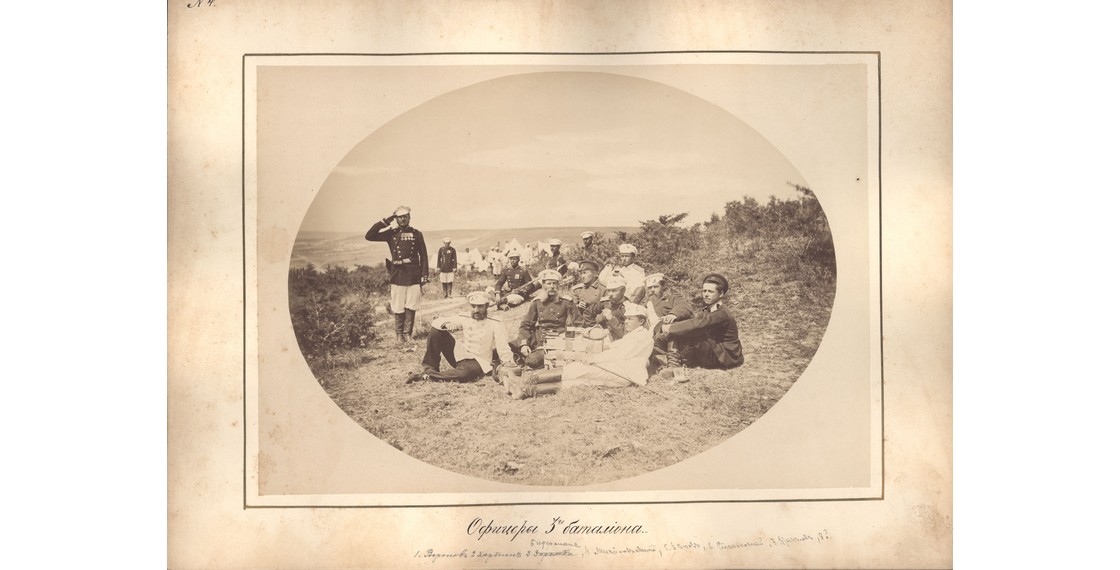 На одной из самых старых фотографий в собрании Дома русского зарубежья перед нами предстает походное чаепитие офицеров 3-го батальона Лейб-Гвардии Волынского полка после завершения Русско-турецкой войны, накануне отправки домой. Болгария, 1878