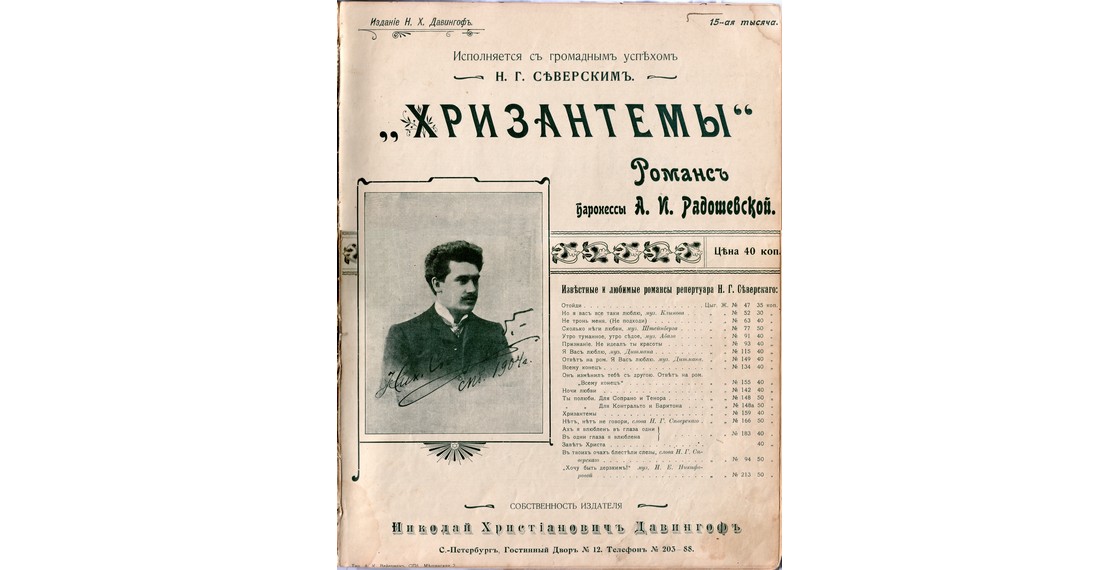 Обложка граммофонной пластинки романсов Н.Г.Прокофьева-Северского. До 1917. Архив И.Павловой