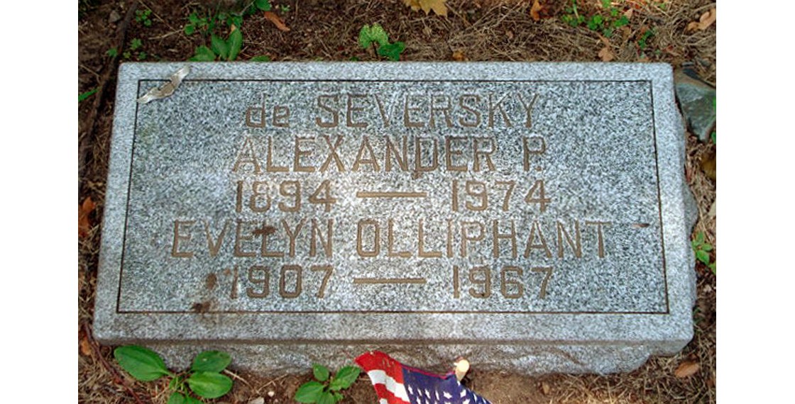 Могила Александра Николаевича Прокофьева-Северского и его жены на кладбище Вудлон (Нью-Йорк, США). Год съемки неизвестен. Из свободных источников