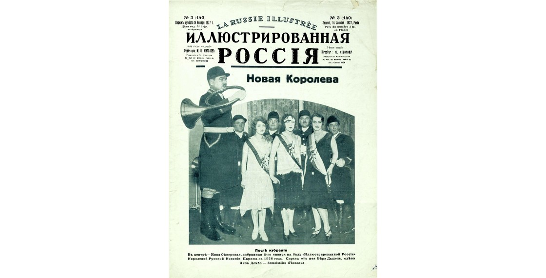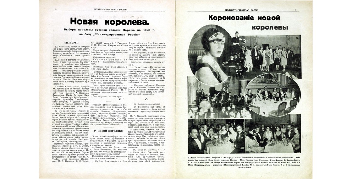 Статья, посвященная выборам королевы русской колонии Парижа, которой стала Ника Прокофьева-Северская (Иллюстрированная Россия. 1928. № 3). Книжное собрание ДРЗ