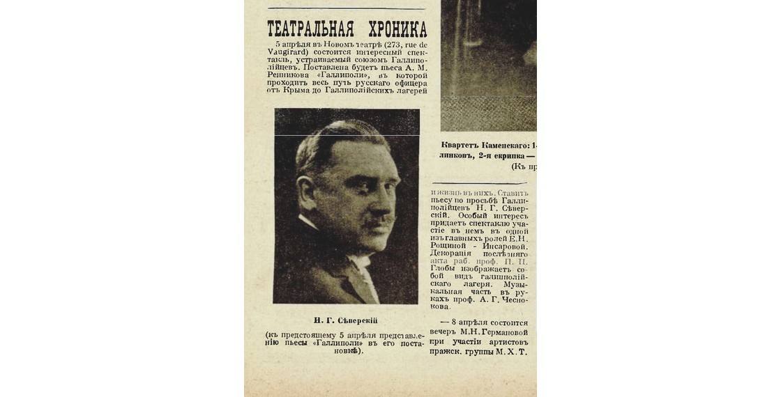 Анонс спектакля «Галлиполи» в постановке Н.Г.Прокофьева-Северского (Иллюстрированная Россия. 1928. № 14). Книжное собрание ДРЗ