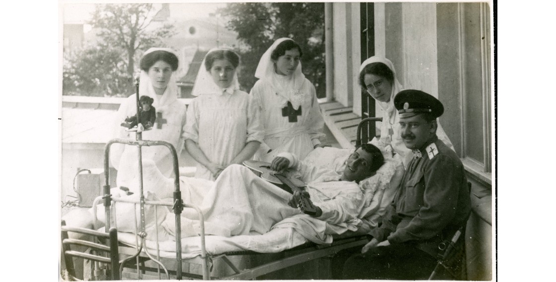Сестры милосердия у постели мичмана А.Н.Прокофьева-Северского. Сидит его отец Н.Г.Прокофьев-Северский. 1915. Архив ДРЗ. Фонд В.М.Томича