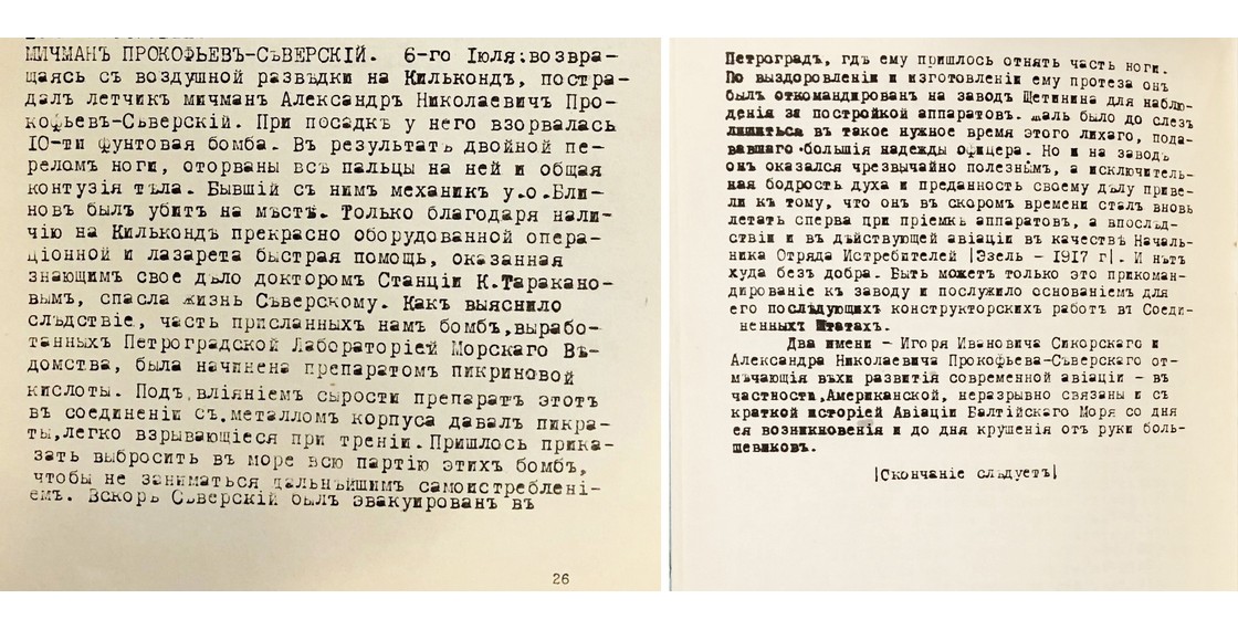 Воспоминания Б.П.Дудорова об А.Н.Прокофьеве-Северском в журнале «Морские записки» (1948. Т. 6, № 1. С. 26–27). Книжное собрание ДРЗ