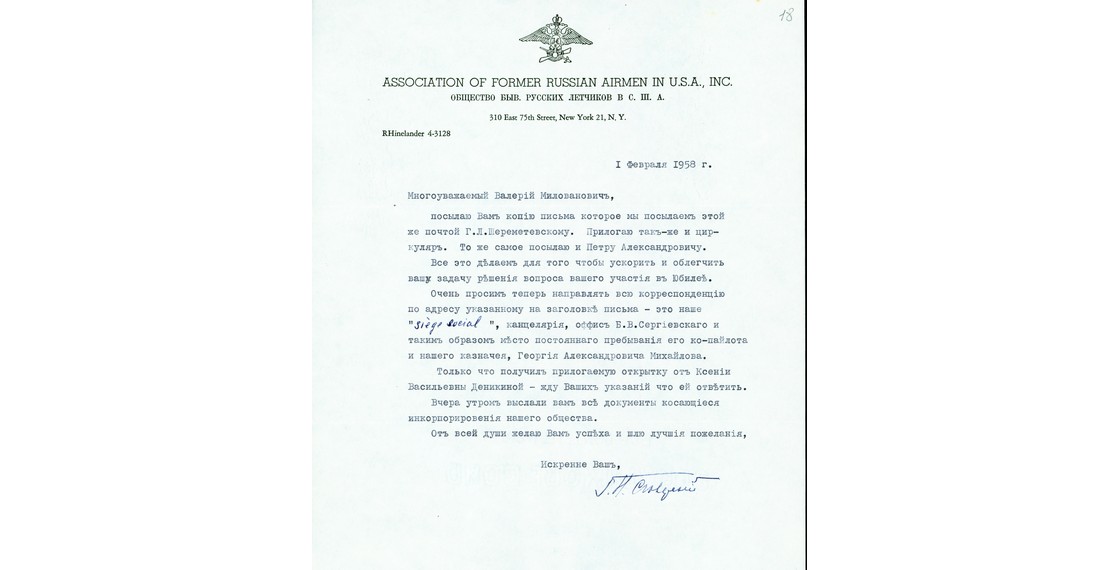Письмо Г.Н.Прокофьева-Северского В.М.Томичу от 1 февраля 1958 г. Архив ДРЗ. Фонд В.М.Томича