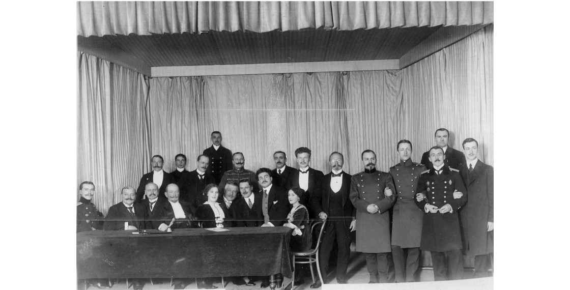 Императорский Всероссийский аэроклуб. За столом крайние справа — Николай Георгиевич Прокофьев-Северский и его жена Варвара Григорьевна Прокофьева-Северская (урожденная Лелеко). 1910-е. Архив И.Павловой
