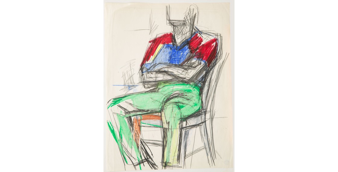 В.В.Иляхинский. Без названия. [Эскиз сидящего мужчины]. США. 1989. Бумага тонкая, карандаш графитный, пастель восковая. 63,6 х 48,4