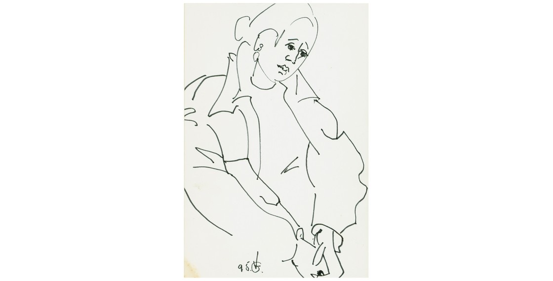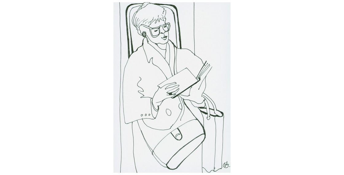 В.Д.Гашурова. Женщина, читающая в метро. Нью-Йорк, США. 2004. Бумага, картон, маркер по рисунку карандашом. 16,4 х 11,4