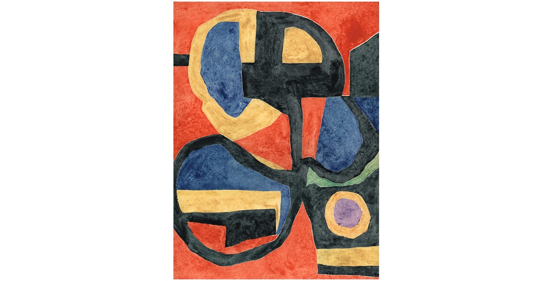 В.В.Иляхинский. Без названия. [Абстрактная композиция]. США. Вторая половина XX в. Бумага для офорта, монотипия, темпера. 64,0 х 38,7 (с полями); 34,6 х 25,0; 20,0 х 28,0