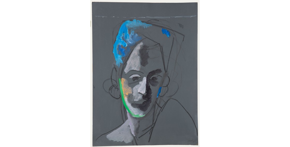 В.В.Иляхинский. Без названия. [Женский портрет]. США. 1987. Бумага грунтованная (темперой), темпера, тушь, уголь. 76,0 х 55,8