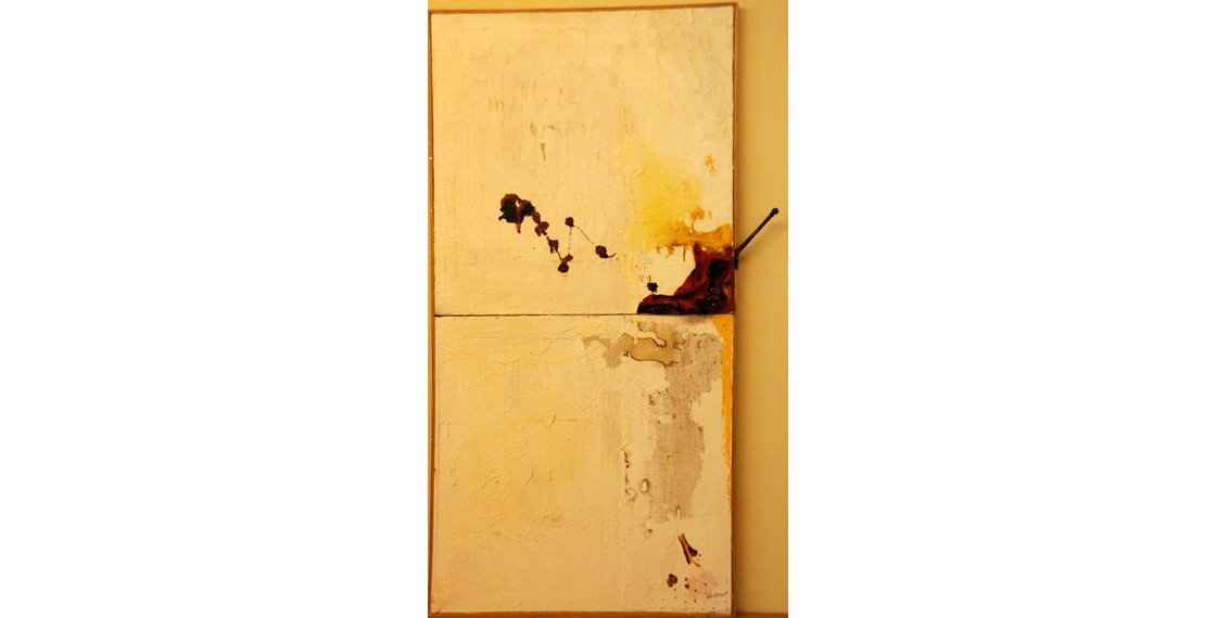 В.В.Иляхинский. Композиция с крючком. США. Вторая половина XX в. Холст, ткань, металл, масло. 101,7 х 51,7