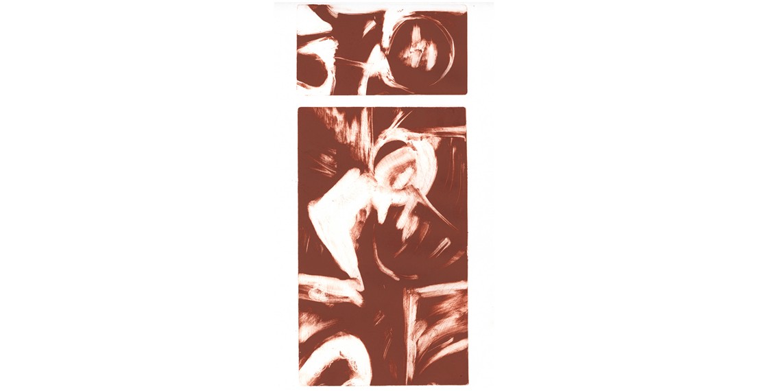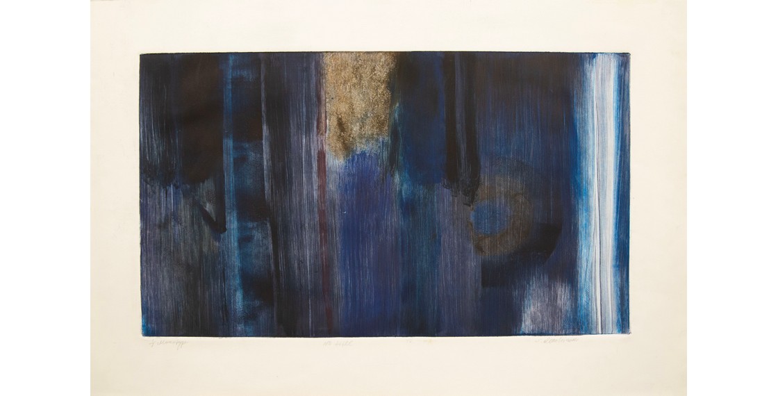 В.В.Иляхинский. Без названия. [Блики 1]. США. Вторая половина XX в. Бумага для офорта, монотипия, темпера. 57,0 х 38,0 (с полями); 10,0 х 18,5; 30,5 х 18,5