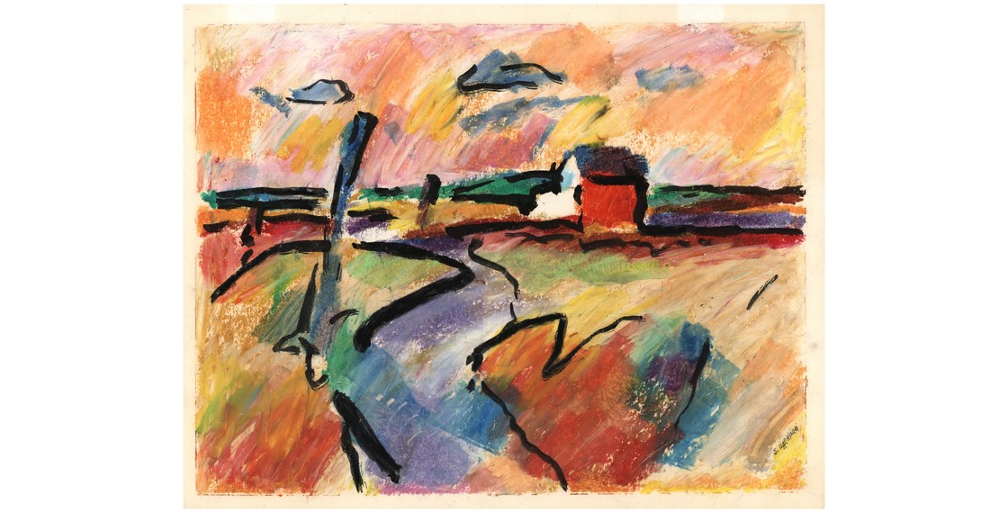 В.В.Иляхинский. Без названия. [Дорога через поле]. США. Вторая половина XX в. Бумага плотная (ватман), пастель восковая. 28,0 х 35,5