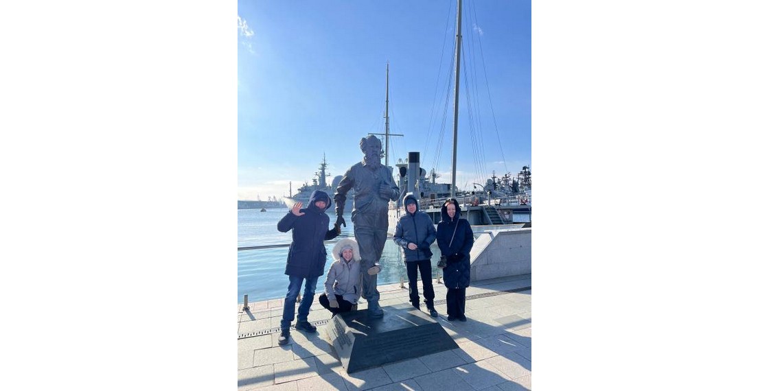 Команда спектакля «Стойкость» у памятника А.Солженицыну. Владивосток, Россия. Декабрь 2024