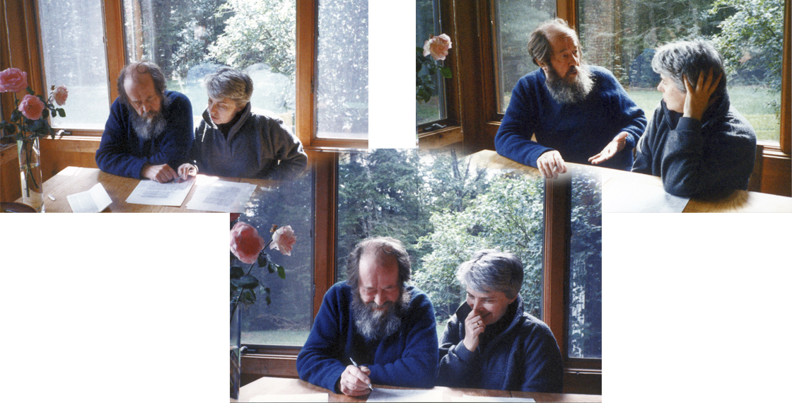 А.И. и Н.Д.Солженицыны за работой над «Красным Колесом». Кавендиш, Вермонт, США. 1980-е